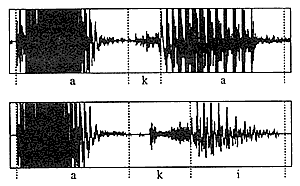 図1「赤/aka/」と「秋/aki/」の音声波形